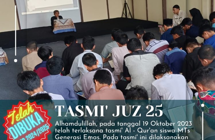 Alhamdulillah, pada tanggal 19 Oktober 2023 telah terlaksana tasmi’ Al – Qur’an siswa MTs Generasi Emas. Pada tasmi’ ini dilaksanakan oleh siswa MTs Generasi...