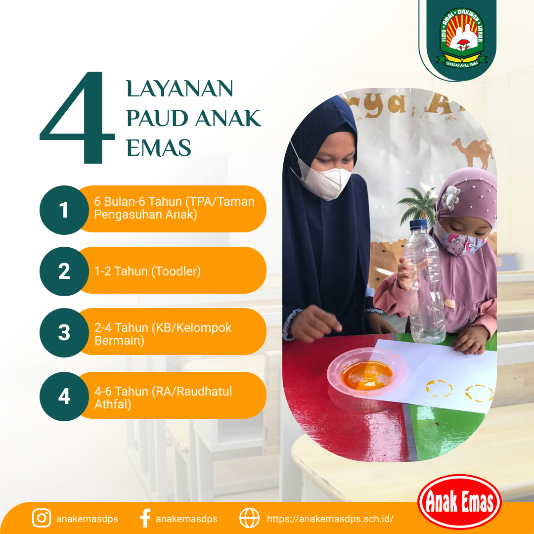 Mari bergabung di Pendidikan Anak Usia Dini Anak Emas bersama guru profesional dan berbagai fasilitas berkualitas.