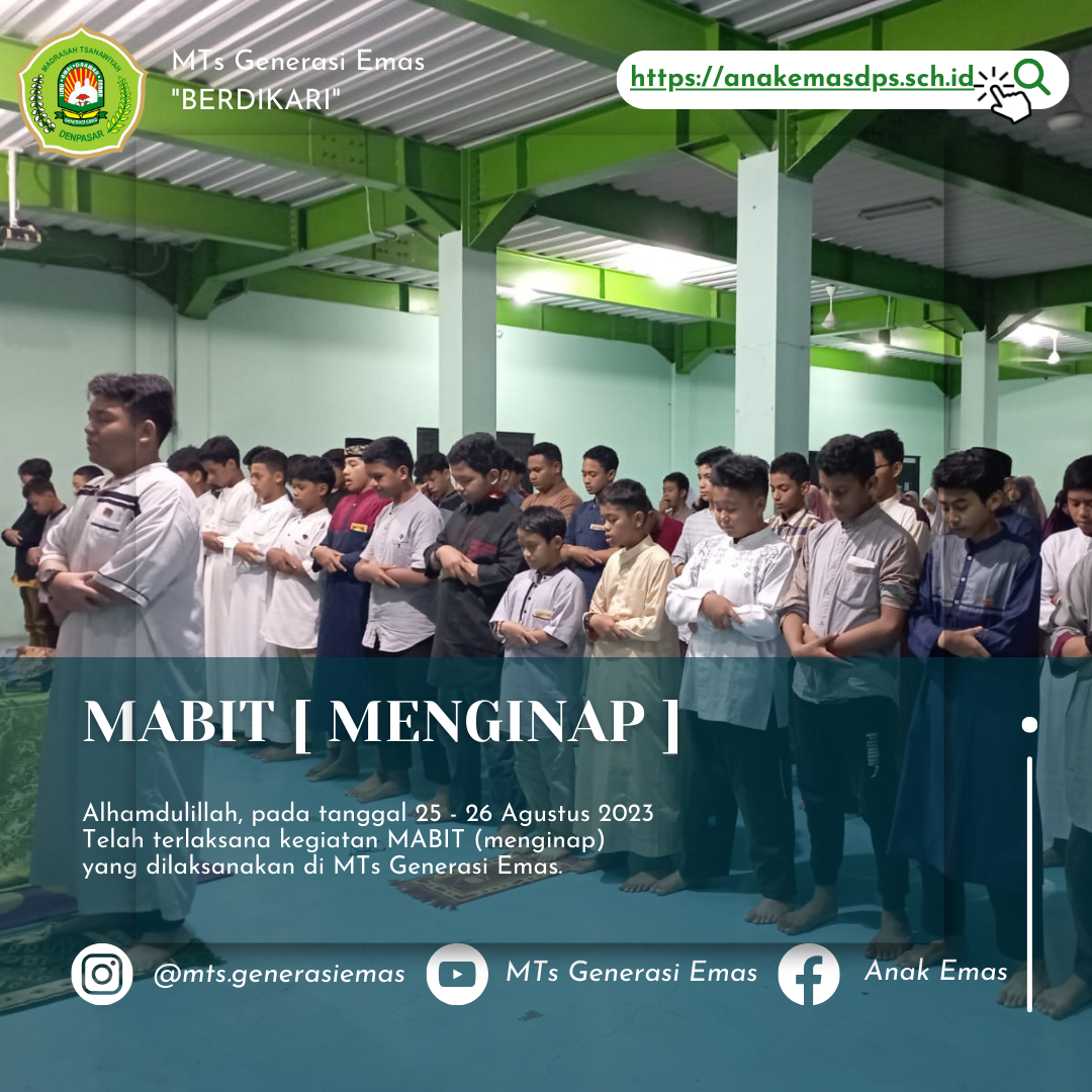Alhamdulillah, pada tanggal 25 – 26 Agustus 2023 telah terlaksana kegiatan MABIT (menginap) yang dilaksanakan di MTs Generasi Emas.