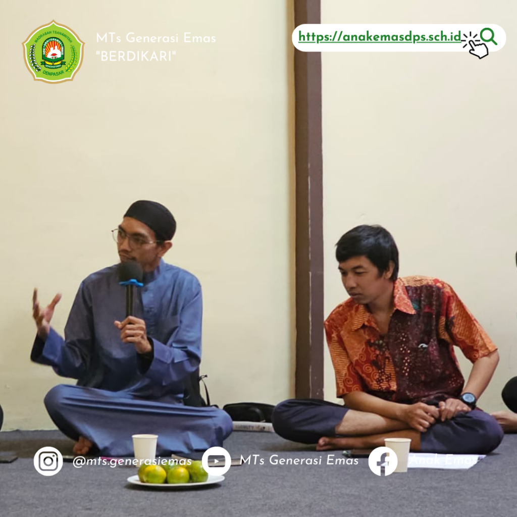 Dalam kegiatan ini berlangsung diskusi dan tukar pikiran antara Yayasan Anak Emas dengan MTs Generasi Emas terkait hal hal yang terjadi di lingkungan sekolah, seperti perkembangan peserta didik, program program sekolah, dan lain sebagainya.