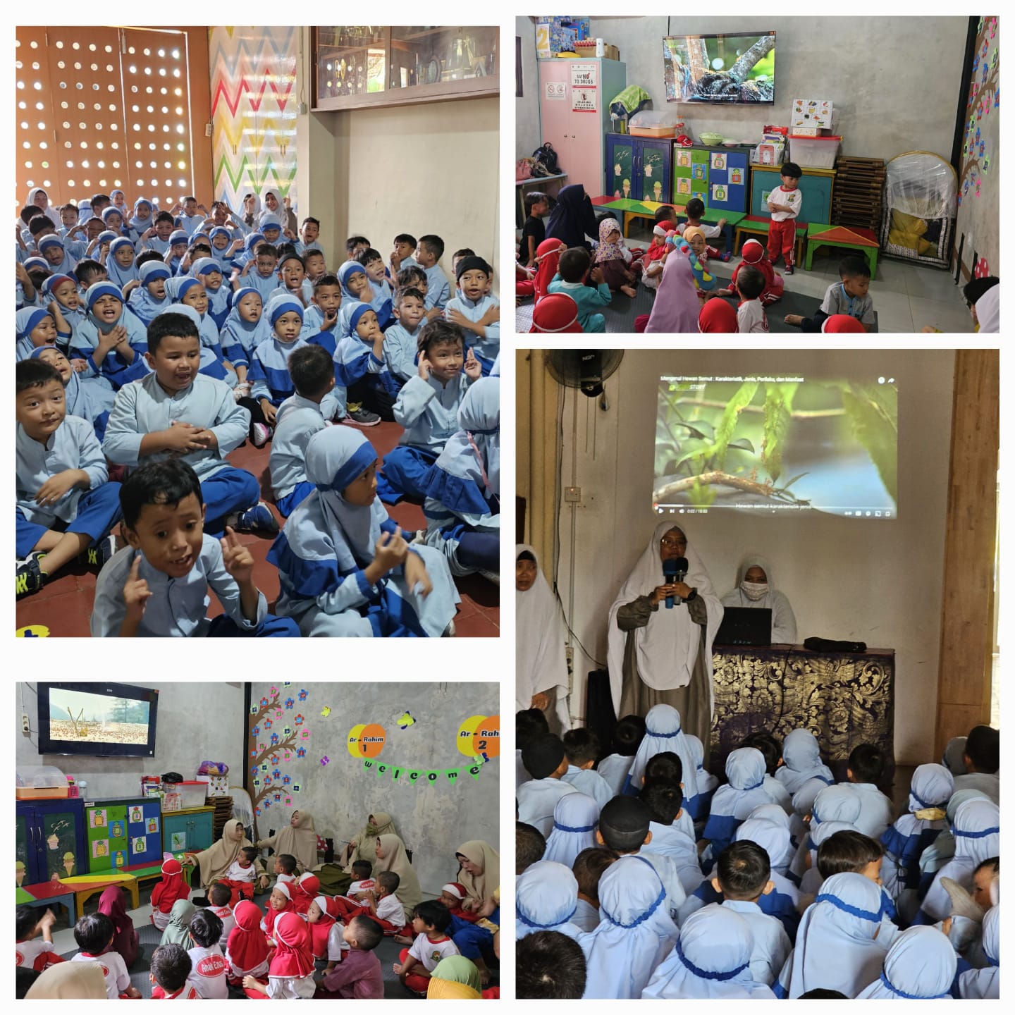 Pada pembukaan topik bulan ini, anak-anak diajak menonton tayangan mengenai pengetahuan tentang semut.