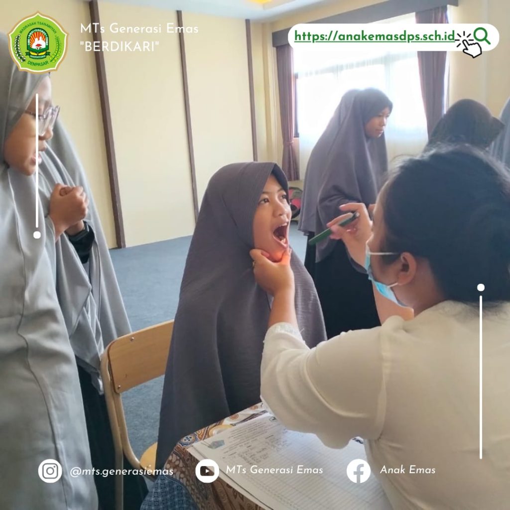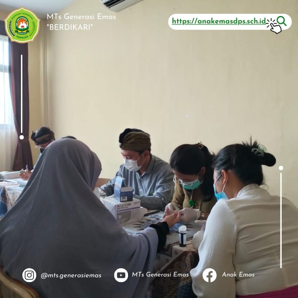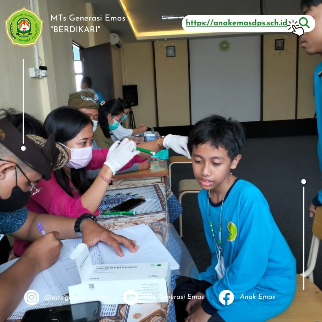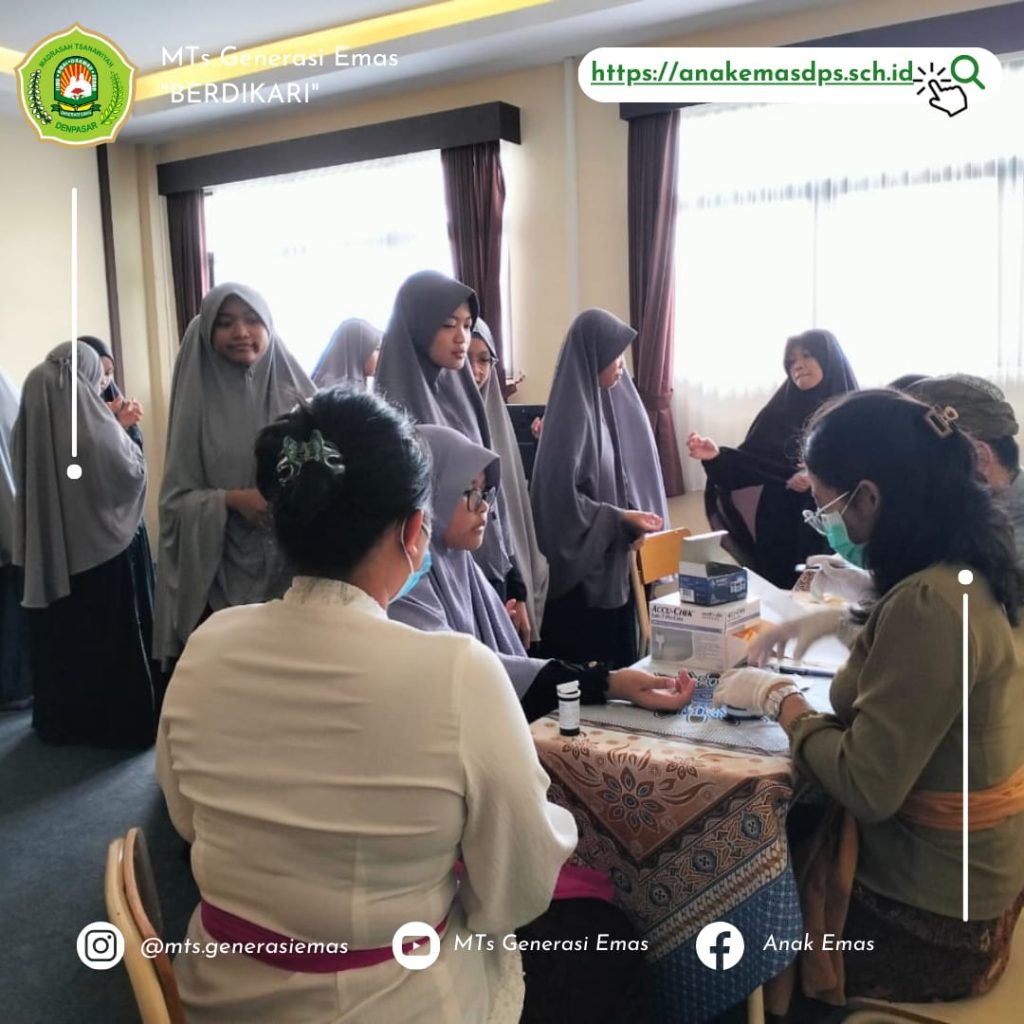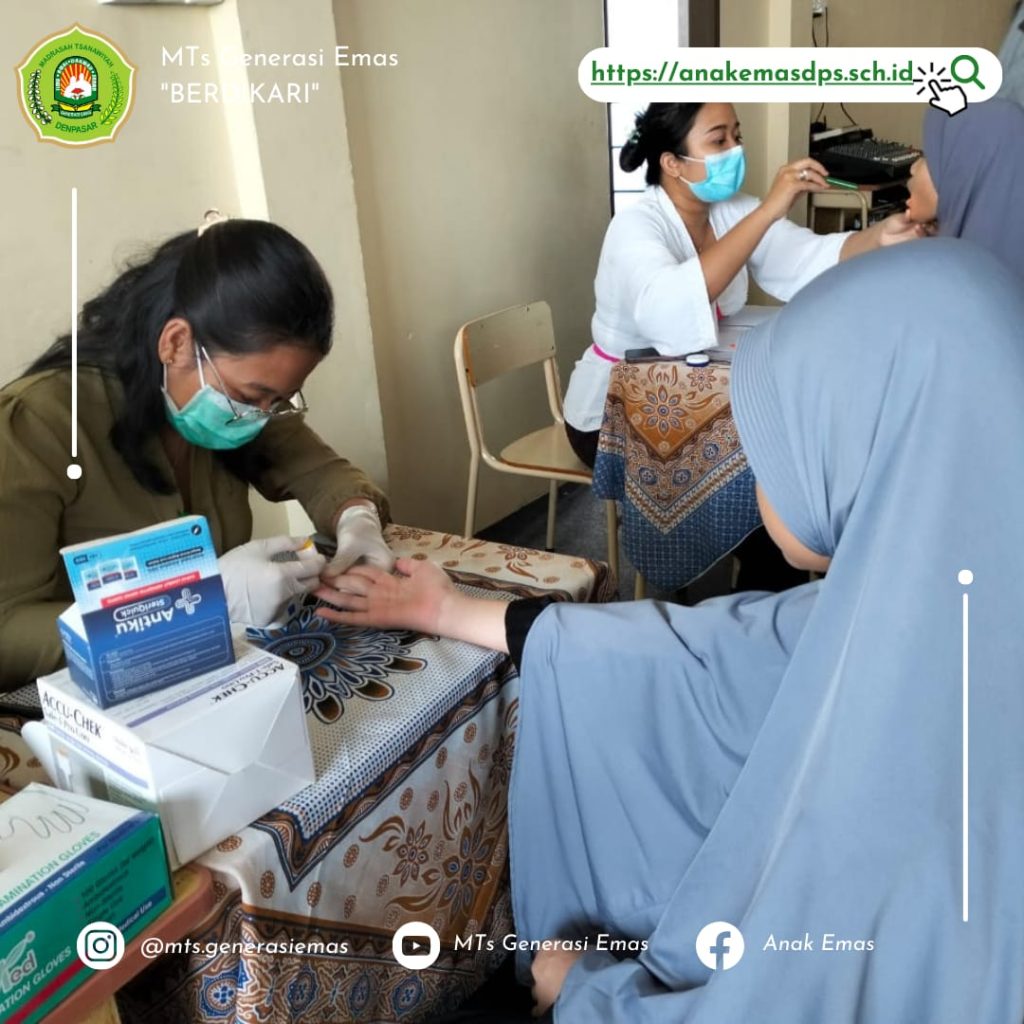 Kegiatan ini dilaksanakan dengan pemeriksaan kesehatan kepada siswa/i kelas 7 MTs Generasi Emas. Selain itu juga dilaksanakan pemeriksaan HB bagi siswi MTs Generasi Emas.