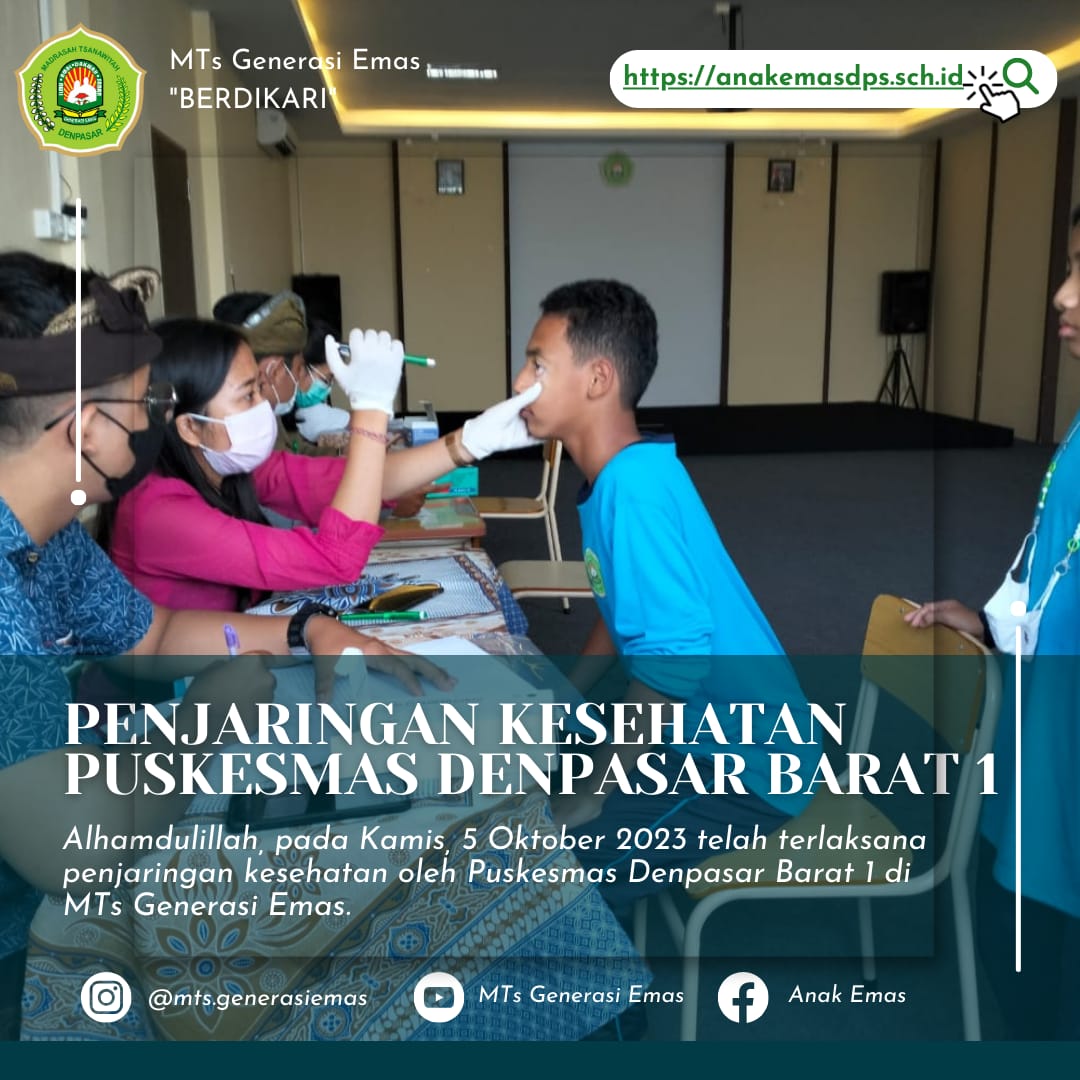 Alhamdulillah, pada Kamis, 5 Oktober 2023 telah terlaksana penjaringan kesehatan oleh Puskesmas Denpasar Barat 1 di MTs Generasi Emas.
