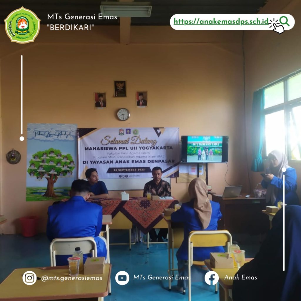 Pada pertemuan ini dosen pembimbing UII Yogyakarta menyerahkan mahasiswa PPL secara simbolis kepada kepala madrasah MTs Generasi Emas