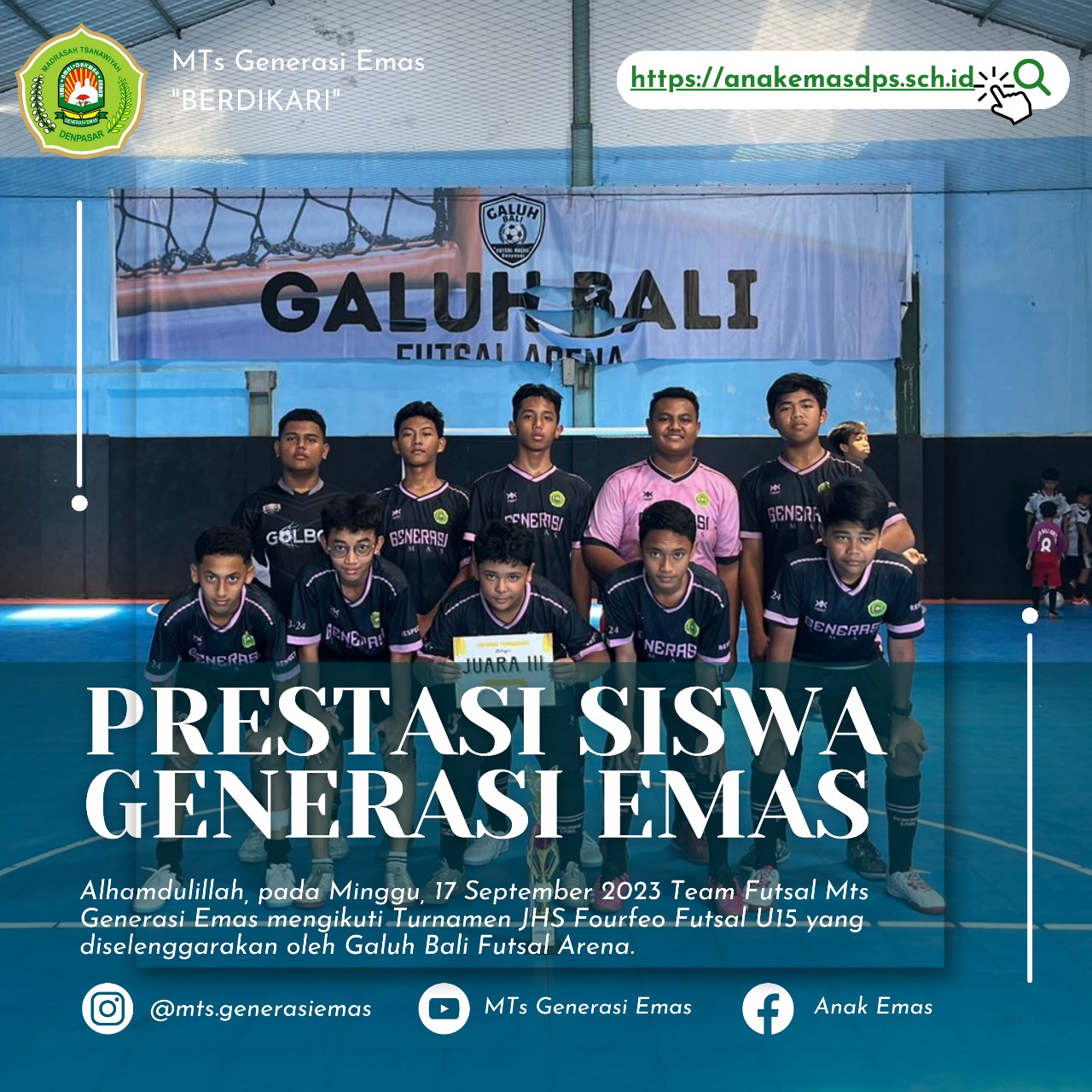 Alhamdulillah, pada Minggu, 17 September 2023 Team Futsal Generasi Emas mengikuti Turnamen Fourfeo yang diselenggarakan oleh Galuh Bali Futsal Arena.