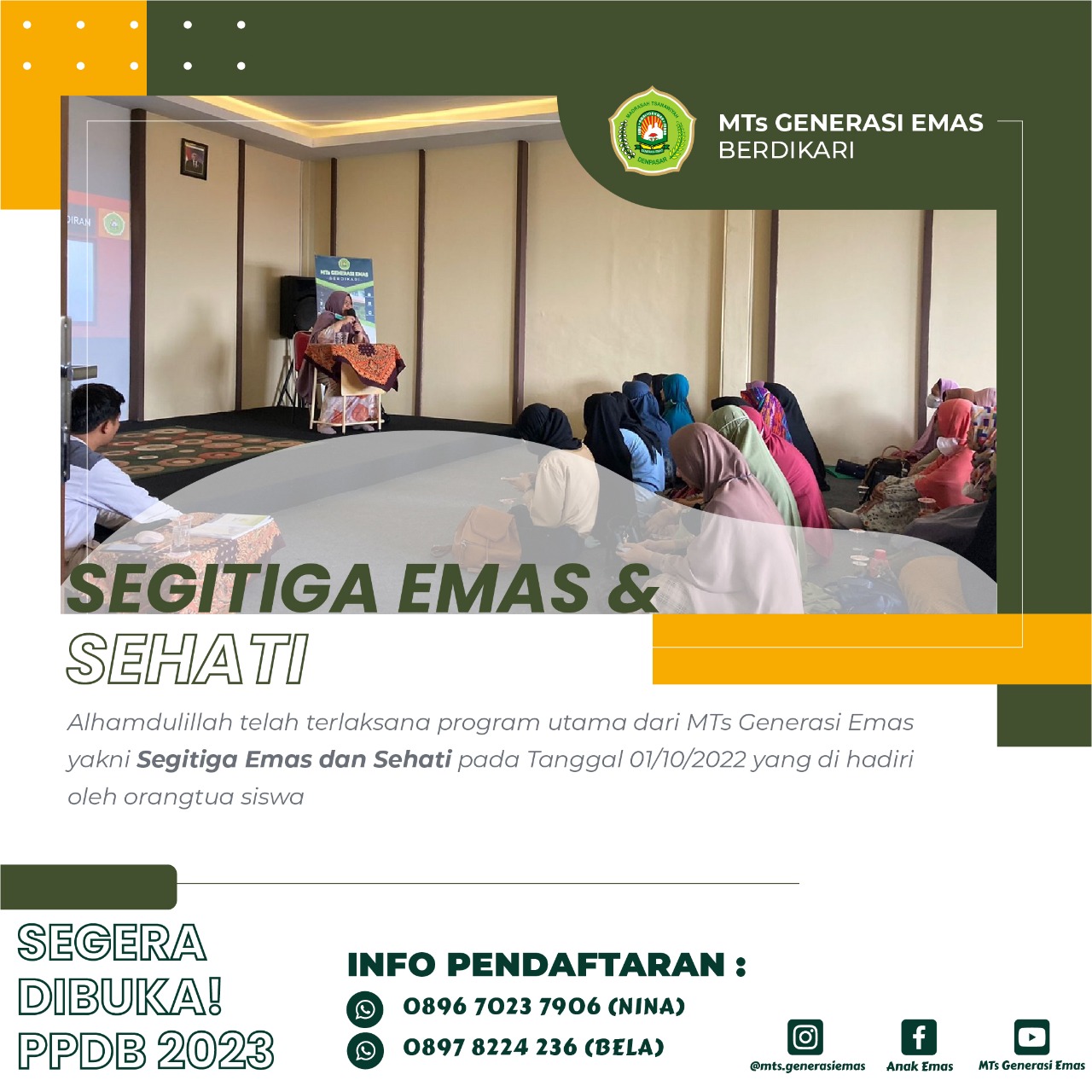Alhamdulillahiladzi bini’matihi tatimushalihat program utama MTs Generasi Emas Segitiga Emas dan Sejati berjalan dengan lancar pada hari Sabtu, 1 Oktober 2022.