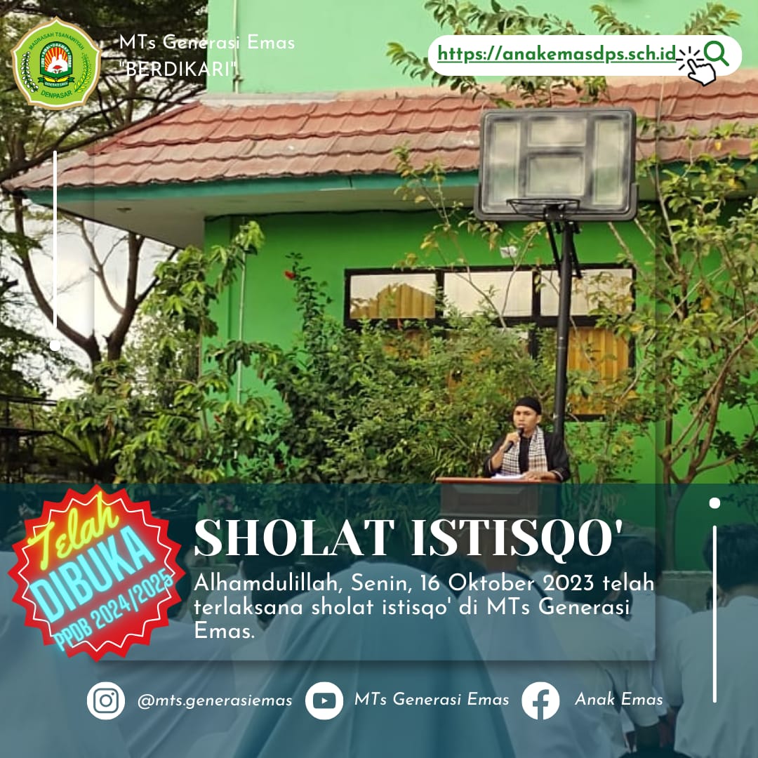 Alhamdulillah, Senin, 16 Oktober 2023 telah terlaksana sholat istisqo’ di MTs Generasi Emas.