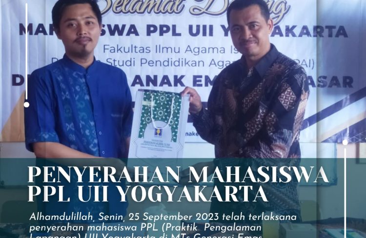 Alhamdulillah, Senin, 25 September 2023 telah terlaksana penyerahan mahasiswa PPL (Praktik Pengalaman Lapangan) UII Yogyakarta di MTs Generasi Emas. Pada pertemuan ini dosen pembimbing...