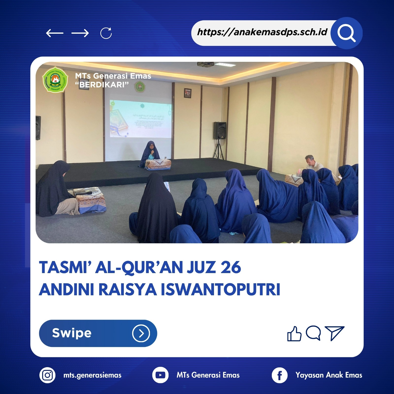 Pada tasmi’ ini dilaksanakan oleh Andini Raisya Iswantoputri dari kelas 9B