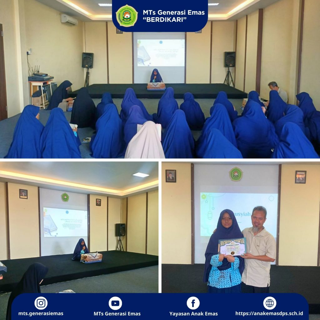 Alhamdulillah, pada hari Rabu, 10 Januari 2024 telah terlaksana tasmi’ Al – Qur’an siswi MTs Generasi Emas.