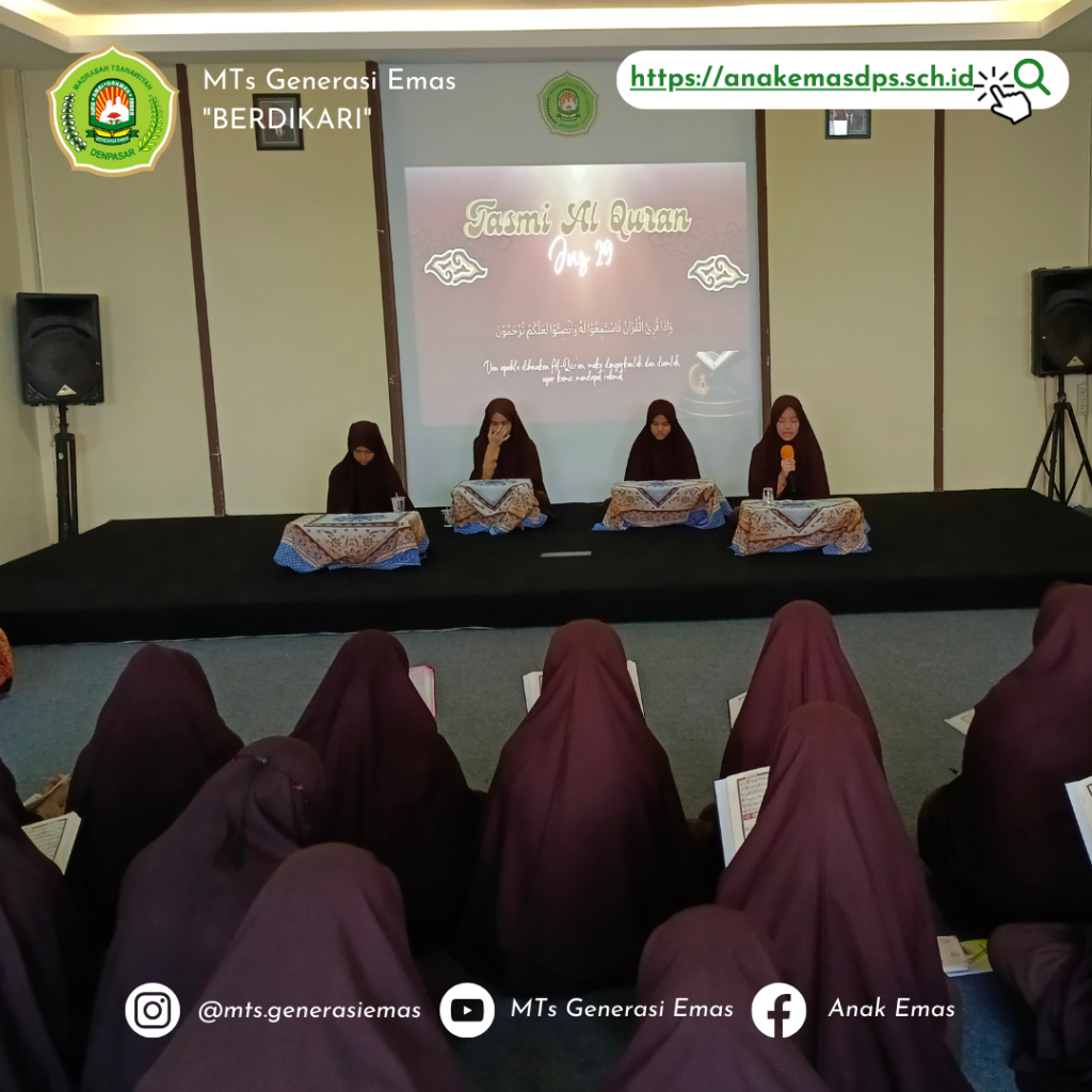 Alhamdulillah, Jum’at, 1 September 2023 telah terlaksana tasmi’ Al – Qur’an siswi MTs Generasi Emas.