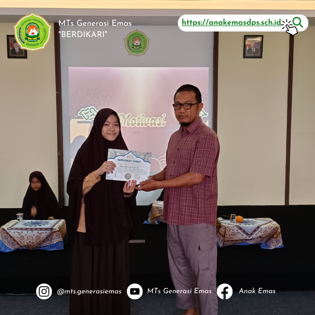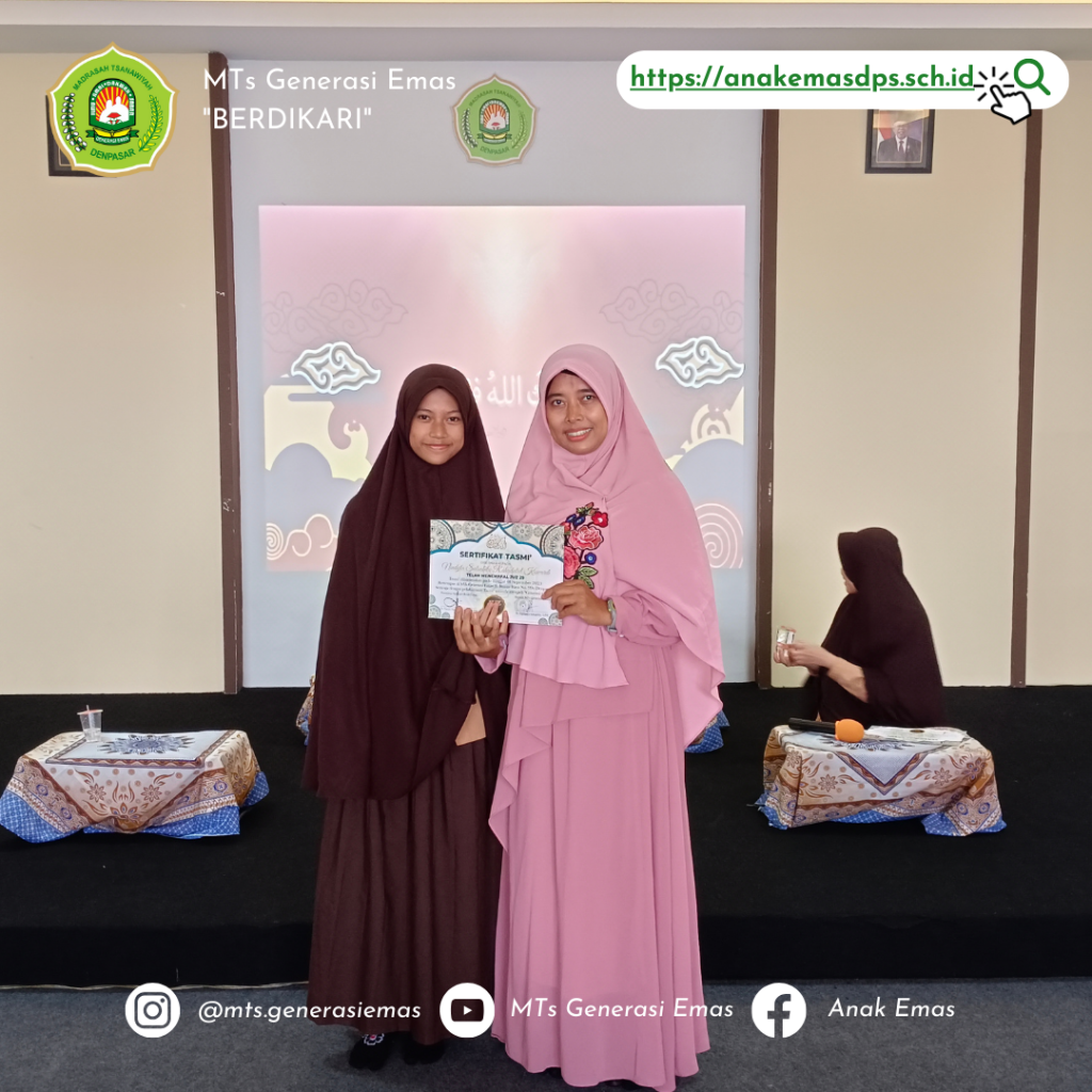 Pada tasmi’ ini diikuti oleh 4 siswi MTs Generasi Emas, diantaranya :