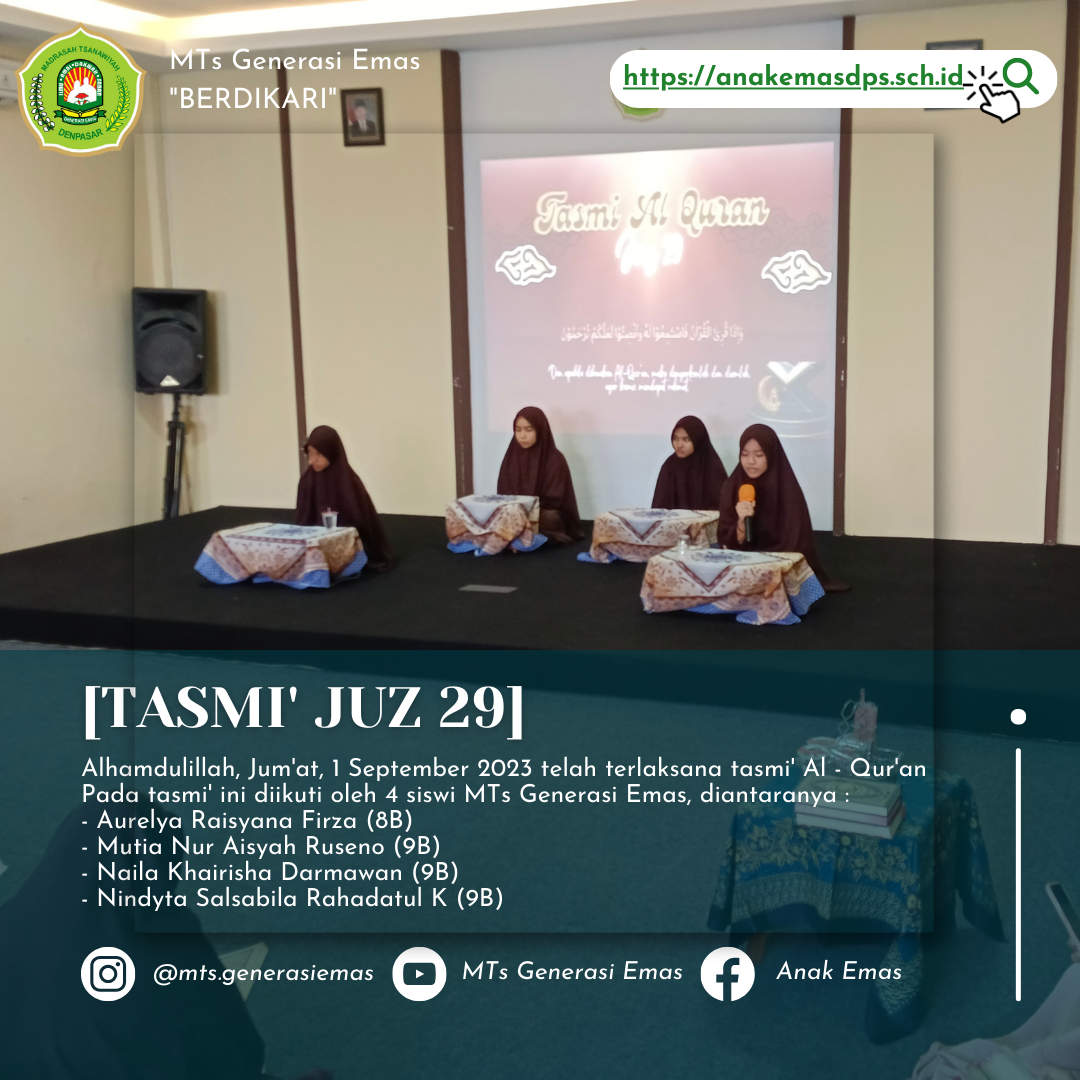 Pada tasmi’ ini diikuti oleh 4 siswi MTs Generasi Emas, diantaranya :