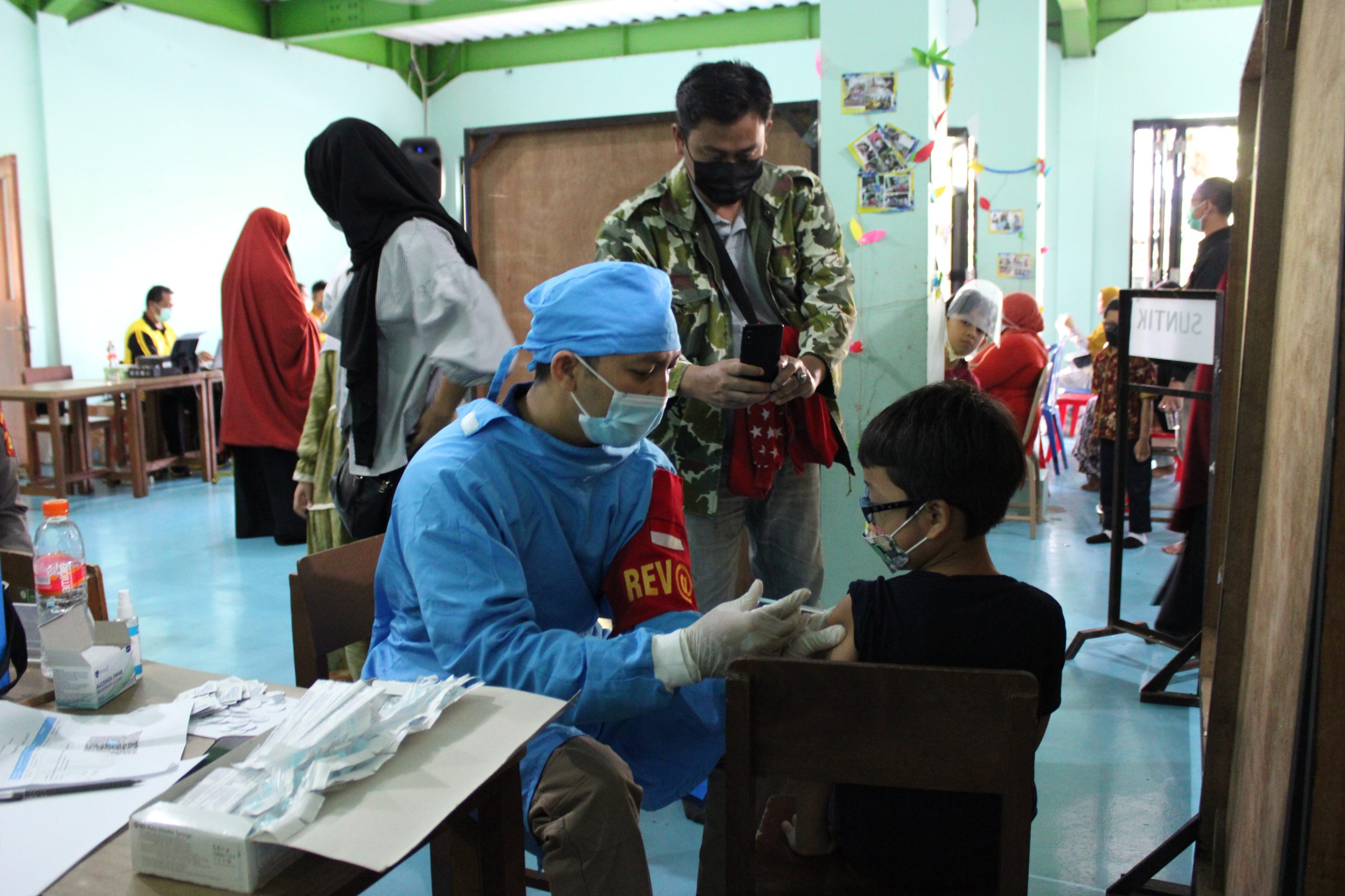 Untuk masyarakat yang ingin mengikuti vaksinasi di SD Anak Emas, masyarakat hanya perlu menunjukkan KTP dari domisili manapun dan bagi yang sudah pernah vaksinasi dosis pertama, dosis kedua di loaksi kegiatan juga disediakan.